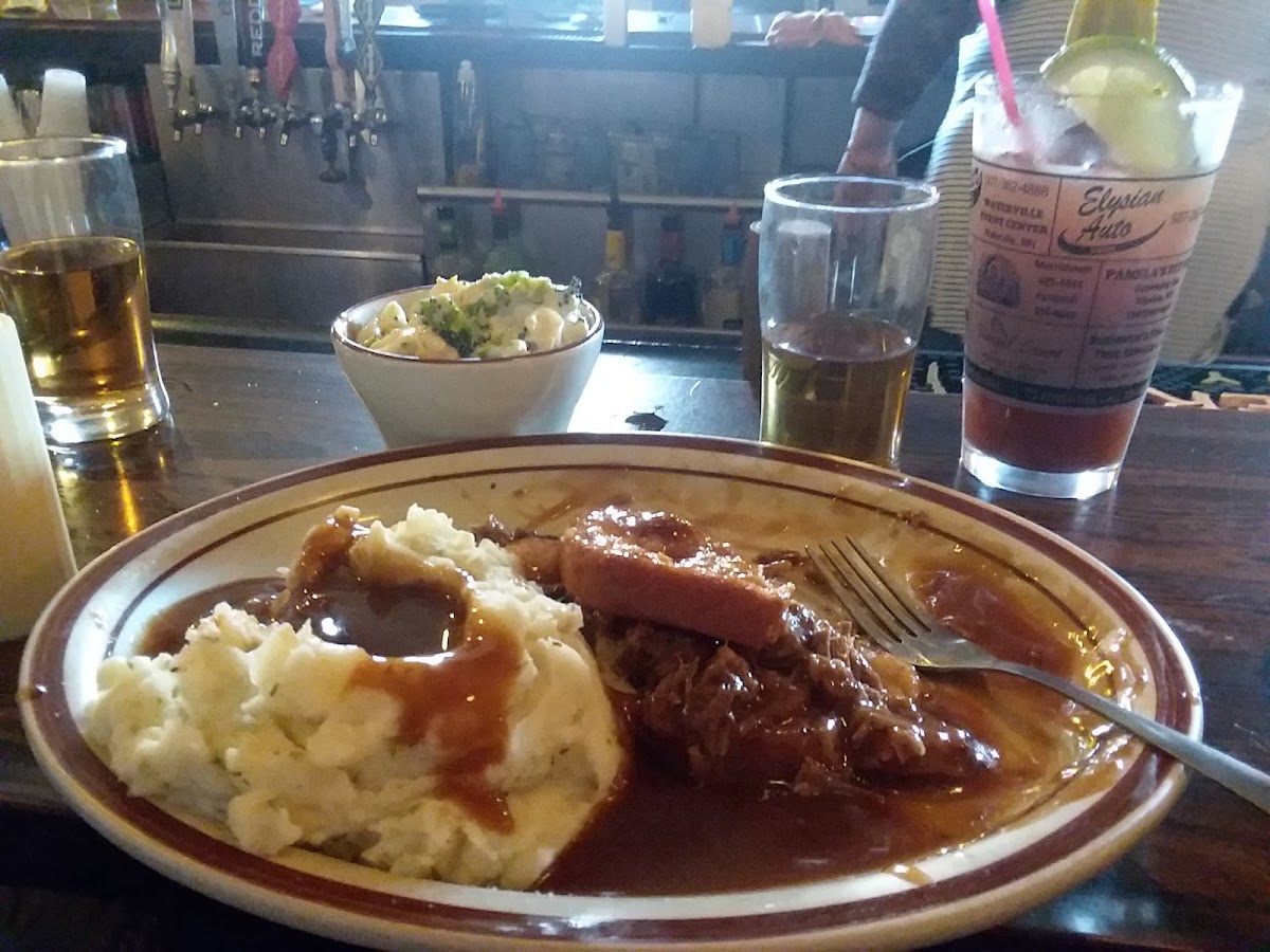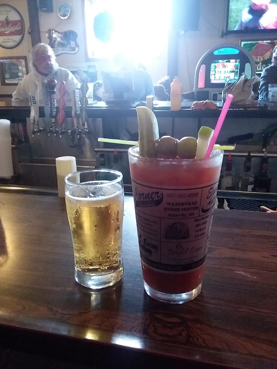 Corner Bar is very comfortable and friendly and welcoming to us as it is our first time in Waterville. We stopped for a beer while bicycling through town. We had the cheeseburger daily special which was appropriate. We enjoyed a conversation with the patron sitting next to us at the bar.