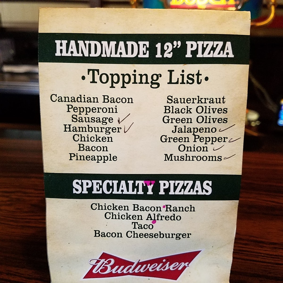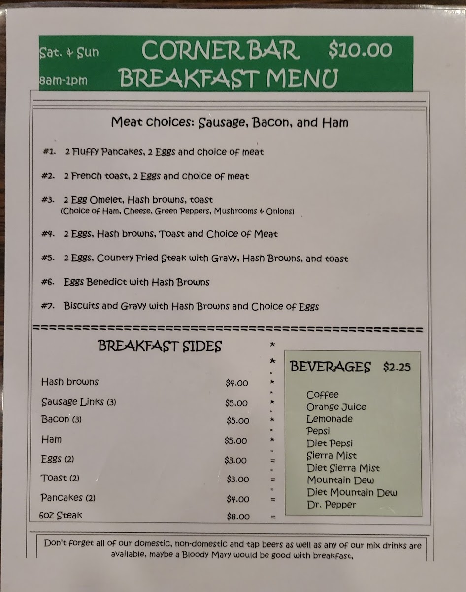 Corner Bar Menu